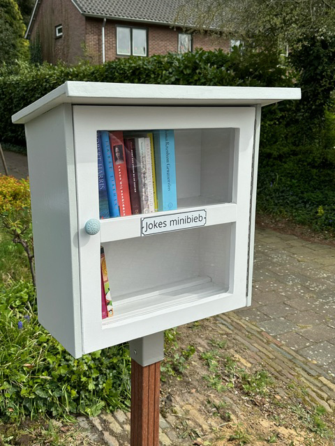 Christiaan: “Dank voor de bouwtekening, die heel helder is. Ik heb hout gehaald bij de houthandel, en gezaagd samen met mijn buurman. Om het plexiglas vast te zetten heb ik rubberen ringetjes tussen de schroeven gedaan, zodat het plexiglas kan werken. Voor de zekerheid heb ik de naden tussen de houten panelen aan de binnenkant gekit. Verder heb ik gewerkt met schroeven en deuvels (hij staat toch buiten in storm en regen); deuvels maken was nieuw voor mij, maar bleek heel eenvoudig als je netjes werkt. Ik ben erg blij met het resultaat!”